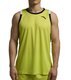 Майка выполнена в ярком желто-зеленом цвете, украшена контрастной черно-белой окантовкой по горловине и проймам, что придает образу динамичность и современный спортивный стиль.