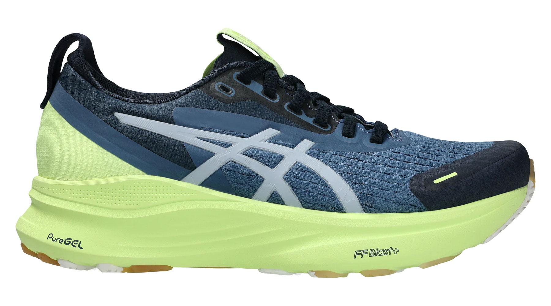 Большая часть промежуточной подошвы Gel-Kayano 32 изготовлена из пены FF Blast Plus с небольшой вставкой PureGel под пяткой. Оба этих материала в основном предназначены для обеспечения комфорта при ходьбе, а не для повышения отзывчивости или упругости.