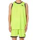 Майка выполнена в ярком желто-зеленом цвете, украшена контрастной черно-белой окантовкой по горловине и проймам, что придает образу динамичность и современный спортивный стиль.